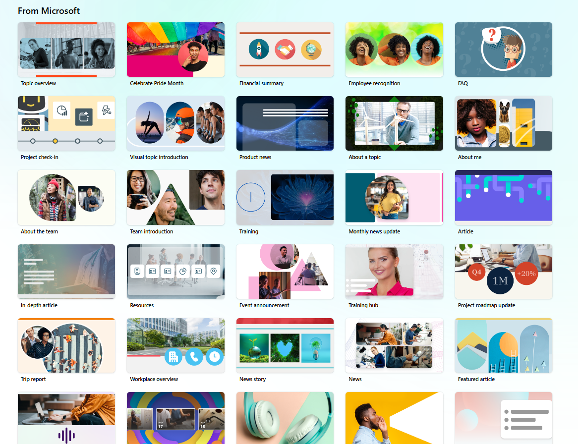 Provide a curated set of page templates (e.g., News, How‑to/Topic, Landing) to for authors that use your brand colours and styles—especially since Microsoft’s gallery can’t be disabled currently.